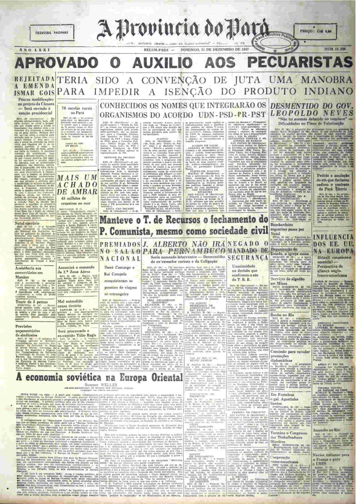 A Província do Pará 1947 - Dezembro (01 a 31) Ler + Edição n° 15.009 Terça-feira, 02 de dezembro de 1947 Ler + Edição n° 15.010 Quarta-feira, 03 de dezembro de 1947 Ler + Edição n° 15.011 Quinta-feira, 04 de dezembro de 1947 Ler + Edição n° 15.012 Sexta-feira, 05 de dezembro de 1947 Ler + Edição n° 15.013 Sábado, 06 de dezembro de 1947 Ler + Edição n° 15.014 Domingo, 07 de dezembro de 1947 Ler + Edição n° 15.015 Terça-feira, 09 de dezembro de 1947 Ler + Edição n° 15.016 Quarta-feira, 10 de dezembro de 1947 Ler + Edição n° 15.017 Quinta-feira, 11 de dezembro de 1947 Ler + Edição n° 15.018 Sexta-feira, 12 de dezembro de 1947 Ler + Edição n° 15.019 Sábado, 13 de dezembro de 1947 Ler + Edição n° 15.020 Domingo, 14 de dezembro de 1947 Ler + Edição n° 15.021 Terça-feira, 16 de dezembro de 1947 Ler + Edição n° 15.022 Quarta-feira, 17 de dezembro de 1947 Ler + Edição n° 15.023 Quinta-feira, 18 de dezembro de 1947 Ler + Edição n° 15.024 Sexta-feira, 19 de dezembro de 1947 Ler + Edição n° 15.025 Sábado, 20 de dezembro de 1947 Ler + Edição n° 15.026 Domingo, 21 de dezembro de 1947 Ler + Edição n° 15.027 Terça-feira, 23 de dezembro de 1947 Ler + Edição n° 15.028 Quarta-feira, 24 de dezembro de 1947 Ler + Edição n° 15.029 Quinta-feira, 25 de dezembro de 1947 Ler + Edição n° 15.030 Sábado, 27 de dezembro de 1947 Ler + Edição n° 15.031 Domingo, 28 de dezembro de 1947 Ler + Edição n° 15.032 Terça-feira, 30 de dezembro de 1947 Ler + Edição n° 15.033 Quarta-feira, 31 de dezembro de 1947