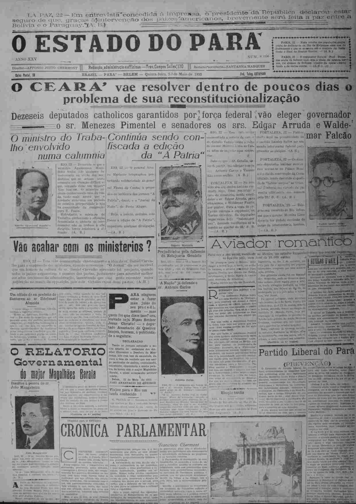 Estado do Pará - Maio 1935 Ler + Edição n° 8.036 Quarta-feira, 01 de Maio de 1935 Ler + Edição n° 8.037 Quinta-feira, 02 de Maio de 1935 Ler + Edição n° 8.038 Sexta-feira, 03 de Maio de 1935 Ler + Edição n° 8.039 Sábado, 04 de Maio de 1935 Ler + Edição n° 8.039-A Domingo, 05 de Maio de 1935 Ler + Edição n° 8.040 Segunda-feira, 06 de Maio de 1935 Ler + Edição n° 8.041 Terça-feira, 07 de Maio de 1935 Ler + Edição n° 8.042 Quarta-feira, 08 de Maio de 1935 Ler + Edição n° 8.043 Quinta-feira, 09 de Maio de 1935 Ler + Edição n° 8.044 Sexta-feira, 10 de Maio de 1935 Ler + Edição n° 8.045 Sábado, 11 de Maio de 1935 Ler + Edição n° 8.046 Domingo, 12 de Maio de 1935 Ler + Edição n° 8.047 Terça-feira, 14 de Maio de 1935 Ler + Edição n° 8.049 Quinta-feira, 16 de Maio de 1935 Ler + Edição n° 8.050 Sexta-feira, 17 de Maio de 1935 Ler + Edição n° 8.051 Sábado, 18 de Maio de 1935 Ler + Edição n° 8.052 Domingo, 19 de Maio de 1935 Ler + Edição n° 8.053 Segunda-feira, 20 de Maio de 1935 Ler + Edição n° 8.054 Terça-feira, 21 de Maio de 1935 Ler + Edição n° 8.055 Quarta-feira, 22 de Maio de 1935 Ler + Edição n° 8.056 Quinta-feira, 23 de Maio de 1935 Ler + Edição n° 8.057 Sexta-feira, 24 de Maio de 1935 Ler + Edição n° 8.058 Sabado, 25 de Maio de 1935 Ler + Edição n° 8.059 Domingo, 26 de Maio de 1935 Ler + Edição n° 8.060 Terça-feira, 28 de Maio de 1935 Ler + Edição n° 8.061 Quarta-feira, 29 de Maio de 1935 Ler + Edição n° 8.062 Quinta-feira, 30 de Maio de 1935 Ler + Edição n° 8.063 Sexta-feira, 31 de Maio de 1935