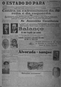 -• . O ESTADO DO PARK rr ,. operanrlo o bancoe to,..alldncl•, e. /Lar.do a 1 1". 6,0. o fran , a 1$ :.UrNO XXV, ... --- .... O Uanco d , BrM.il :1cav11 a libra a ;;g, l _1>1_nct_ ºr_-_A_F_F_o_N_s_o_ro_s_T_o_c_HE'::":"!"R_M_o_N_rr-.!\\!.!!.\\__ R_ed_a_cç;...ã...;o,_a_im_i_n·_1s_t_r_aç_1o_e __ o_ff_ic_i_na_s::::_'l'_ra_v_. e_a_m_p_os_S_· :1_ll_1s_._13_0_.u,__R_ed __ =ªctone-cretario-SANTANNA MARQUJ:S Caiu Pastai. H BRASIL - .PARA' - BELEM - Sabbldo, 22 de Junho de 1935 Ed, Tel11. UTAPABA --'--!!I!!!!!!!!!!!!!"""'"!!!!!!!!'!!"!!"'""'!!!~!!!'---~-.. - '!!"_ 11111_ ..... "!!!!"!"'!!"'""'!'!!!"!!"'"~~~-~--!!!!!"!''!'!!!!!!'!!!!!!!!!!!li Contra os extremismos da reita e d.a esquerda 1 Os gaúchos sem.~distlncção de côr politica vã.o unir-se num. par– tido só e com.bate a e§sa.s correntes de opinião que pretendem•--·· J ... . ( .. ,.. afflnglr o i poder or do-s calDi'.hinho§ dlf:fere:ntes RIO, 21 - 03 jomaes des· tacam :noticias expedidas de Porto Alegre dizendo que oe elementos da Frente U· "Ninguem se illuda que a:-– guerra foi declarld"'-. Sabe- Na · AsSémbléa 1 ,Constituinte • l!org • de Mo:l•lrcs nica. e' do P:u-tido Libe1·al estão cogitando da forma– ção de um par':ido de cara· mos muito bem que o Brasil não supportaria o terror fas- Fiar d OUn!Ja cista nem o dominio das doutrinas da esquerda. Mais uma vez nos é chegado dos pampas o exemplo de a.mor :~ l --------- A sessão ' de h.o:n..tem.-Congratufações ao ministro Ma Soares e aos representantes da Argentina, B0Uvia 1 "e Pa Demoràda... diséúiiãÕsobre a:indicação que augmenta os vencimentos dos funccionários da Secretaria • - ---- ·--• Co:n ~ pu1'en,:a 05 -., Pirea camar f B ·alanço r~~~~!::.=.i1:'.:'=~t:~: ... ,,.. Dow~n. t)OUz.a ea.~. A deharo Klauta.u. Cldo Antonino Mello. 1:-ltn ~ ), DJ.u Ju. 1 n c:-.Jo nJor. Borges Leal, OetavSO Mtlra., l!ynra,J a 1!'11& COutlnho, Blranor Pt:ialt.=. Nua~ Rodrl. 1 oe ♦ ♦ ♦ •• ♦ ♦ ♦ • ♦ ♦ • • ♦ •••• ♦ ♦ ♦ • ♦ ♦ ♦ ♦ • • ► • ' ♦ ♦ • ~. AladlD p UI ':.'UOr AZ ~\cllÔ ........................... ~ .........................•••... • ..••••••••••••••• ................ ♦ ,.•••••♦••••• •••• Ana.5tacso l::fe. Que:.:,~ e J 3, Aben de uma tragedia"que acabou O _Pa-r... aguay [occu.pa 150.000"" k.j_lometros do Ob.aco ~u~ooo 1 murros, Jl. ooo prisioneira~ e~tooíoH material ~ellico oer,ido oela Bolivi1 nos J ·1nnos ~e tuctus BCJ::~·os .l:tR.t:S, 17 - (Por ,·in aC..., (lo; ;i·,ouo vrorn:dn .:ir urti.k 11iu r,~-------------- Athar, funcctcmou hont , A t dr A,:iembléa Coll5Utuln< d? .E do, . O ll(ICIO DA u.ssAO H:1., o numero ltg:1,l, nuume a J)l'MI. Ti&J', deneto. o u-. PJru Cri u, aeac1ar1ado 1, . 4 peloe &,. t->um F11b:> e, na.nco Mar 1 -ro t,-rn. \',( ·~rt• Abert.a n UO ~ Uda e pprovodn. a t' ri 1 acta antc,-Jo:-, u•g,.J1.r...io-1c o ,e,x.pedlente Eala que constou de urg oftV.lt.l da AF:aem. ttUn bléa dO Estado , Pcrn , t J411, commu. JO'MIOR n1c;indo 11. clt.ÇaO e J>!'1 df' •ua. Albla. JIJ'll CCNGRATULAÇôES AO MINIST:tO DO - C.TIEI'JCT: PEL.\ '1/lt"TOI:IA &A DIPl..0. cotno MACIA BRA U.F.IRA biéa, Pela ordem. o 61'. D,IJI Ju.nk'T, IOli~! l .::p:,la=:.:~.:_:"':_:e_::d:_:,-.::lan::_-.:___ -=-_~_,.-~;~~~~~~~- ren) _ Terminada n guerr.1 do C'hat·o, morteiro: :.!J.1)0!1 fJ'IU de tíru-s dr.: iUL.ili f V• 1 - 1 pela intervcm:.:.1.o·umhto:-:;n da.~ ;potcuL"ias noo autu11u1n·i : :,•, IU dt• OUfJ'Cli mate 10 enta a dvertenc1·a de um mediadoras, l,al :rncc:1.ra. m-se os prcjui riae" tclephoui.-u ; tl•k:.!;1·.1 phi1·o,, y1,·c: zo3 que ti\'cram o~ btügcr:intes 110, trt::i rC':-, tan<1ui·:, da1.,,1n 1 n11in1L:c◄, ian-i:11-d1u anno .. tle ~uetu, dr:11le O primeiro eom• ma.., 111fl!:'eara; rontr;&. j!IIJr.•, O que ;,e~- do E • t o d do bat• "'"islalo u 10 de junho de l932 a ,nlin cm lU ,lc- <lullarc,. xerc1 o ao pres1 ente 1~ de jurtl,,, ultimo, c1uaudo .,e dcsfe• "F'orain 1ei '4) Jll !,.i1õ'1 lrn f- chou o dcrraJeiro tiro. ·1i,h,uo~ :J'cm "lc ílllflt!Jwtt(J-{, ,ll.' :11, º ultimo eommunic:ulo oHL-inl, for- ,pa:cci<lu,, !'elido,, do,crturc,, ct.., b un al de Just1· ça Ele1·toral j , lta111 PUia 1 Maurlc1 0 Oardo;o - . !pelo Brasil. A União Demo· cter nacional, co111 o nome ,cratica deverá. estender-se de União Democrat·-::i, aI~m lpcr todo O paiz, congregan– de comba_te~ os extrenn.s. ' do todos oz partidos em tor– mos da direita e da esquer· no dessa lucta contra as a. da . 1 • 'gremiações ameaçadoras da A "Gazeta. de Noticias", nossa indole democratica". co~entando, diz: 1 - (A.B) Tr-:insferido o comanda1te do26, 0 B.C te d ~e J·. l.. 1!0, Orlanrlo <ln ,1oruc-.:, q:ic ~PTÓ nhi-titui,lo, iuterim.ml ·utf.l, por la1fo:i ,\JoJU<'.., 1·nja tHJ!uett,çÔ.O 1 ul,mcUt.rei (, OS! 4;nntHra <lc s. e.te . RIO, :?1 O Ll.~nl -..ot •ii.el o ,. prc•i1le11lc ,1,. ltt,J:.uhlira.. \tli. Llbanlo Augusto dn C' •nh'I )lat- ,ruul (a) PI!f>TOGE~ES GL'OlA• ..:.._.:;:._'----==----f Jl-\E~, 111111i. tro c.!'1 _,Jnriuha• ueeido pelo 1).füni.~:tcrio de Dofrsa de iAs• -nmprão, infortnn,·a quo J10 forlins e Xc!ite-::i 11,unNn◄ uúo •·~t1io iuv1uit101 o➔ IJlOSt~ núlitnres estão cm poder <los sol- <lo~ ultimo!-C .~-ombatc.~ YCrifi<-:\,to~ rm J 1 - __ n dado, parnguayo~ no Chae.o. gu,•i, onde foram feito1 ]Jri!-iionciros o O material captura.do cm <'Ombate ,chefe '1c di\·isiio <ioronel Bretcl, dois cono:ta de 5.000 ar,lJl!ls automatica'!'; 4:! comman-luntc!-1 de• regi111t'11toli, 20 t· u.,r,~~ tnnhões 75 e outros; 1113 morteiros Sto- <' of.ffoinc~. :ilt1u de um milheiro de ~al– RIO. 21- Oi; jol'llac:; pu· Ide .Àzen·,lo diri;:íu ao 111~· hlícam com <lestaque o 1ele.. n i ~ t r o II 1•1111('11egildo dt• grnmma que o <'ap. Gw~·e1· Rarrc,~. p:•e,i1lr'l1t<' ,lo ~11p1- l'kti·Brnnrlt; 42.001 fuzis; 4 t:inqucs dC' \ guerra; 1 •t1\·iâo 1 Yitl.er"', em 
