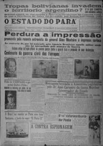 EEB Gt ED UE e territorio argentino Ego que Ca B Camara. Co UE ATRES, 19-Foi pedida a convocação urgente da e ie epa a Provincia de Jujuy foi invadida Por euas bolivianas. (A o eso pe tro ma RE q e O e me mm r , RIO, 19 — O epa ae "1 geral Das cto Federal opinou pela imprima ; xa-crime que a Alliança Nacional 1 iu move contra o chefe de policia capitão Muller, (A. B.) 1 iefoA ANNO XXV j NUM. 8.167 RIO, 19 — Thegarani hoje de IST ca EE = = == Ee se T==—— e - RES A e o De de Alho recolhidas á Casa da Moeda, Cineo caixas: - = e nano ps ' 138 kilos de ouro, valor Disector—AFFONSO JUSTO CHERMONT mio Redacção, administração e efficinas Trav.Gampos Salles, 130 || Eedactor-secretario-SANTANNA MARQUES por [EB nperrni o "o “Baixa Postal, 28 BRASIL — PARA' — BELEM — Sexta-feira, 20 de Setembro de 1935 Enê, Tal ESTAPARA ... Perdura a impress rovocata pela recente entrevista do general Góes Monteiro á imprensa Ão contrario do; que foi noticiado pela Agencia Brasileira aquelte militar à não foi interpellado pelo ministro da Guerr —Nitent animo Drção elficial li Dorm Ducha Conlra 9 general Goo a gropogito h Suas fla EE Ralo 8 RIO, 19 — TA” entrevista Sabemos « que aattitude do | zendo que ; do general Góes Monteiro ao ex-ministro da Guerra é eri- queza. As maioria. d Ha ) DS “Diario da Noite” está cau- ticada severamente em todos] sume a imp sando grande “sensação nos | «q cireulos, embora alguns meios politicos e militares. Dad raros jornaes o defendam di- o AA ERR ação da data AS NhOjSrpoedono | ER A posse donovo jus E . E* essa à prijceira phase da epopta ferróupilha, * Jes gador Jorge Hur n notavel artigo, sobre os hcrões da guerra civil e o papel de cada um no'desfecho dos acontecimen. tos, e do qual extralhtmnos esse trecho. Contraternizândo com o povo gaúcho, | O nono Estado feriou o dia de hoje e fez-se represoítar nas commemorações por uma « E perlaméntares, es. e: stas e estudart m em Pc pelo xiesembar Prefeito de Portel mn Para esse municipio seguirá, hoje, uma caravana, pelo “Capitão Assis” Da prefeitura municipal de Portel, pas ra cuja géstão vem de ser nomeado pelo sr. dr. José Malcher, £overnador do Ex« (tado, tomará posse, depois de umanhã, O sr. coronel, Francisco Severiano de Moura, prestigiosa figura, que obedece q ortentação política do deputado João Sá, alli cheflando a Unlão Popular. Acompanhanda o novo chefe da com.. muna, de- Portel seguirá de Belem uma caravana, integrada, por personalidades politicas, farmiltas (6 imprensa, a qual viajará pelo “Capitão Assis”. Em companhia db, nosso amigo, er. Alcides Santos, o sr, Francisco Severino de Moura deu-nos hontem o .prazer de sua visita para conyídar.nos a nos fazer representar no acto de sua posse. rá, já muito ae de dor, hercico e brav Cobanrgem, pele pela Mbertaçã Bento Gonçalves | Nhos dos pampas se 7 E Essa no, O ESTADO será, nessa viagem, re- arrogimen sob o commando de Bai , ? é > presenteado pelo nosso compaxheimo dr. O pavilhão do Pará na Exposição Espa np cad VosiiBaria, o general Góes Monteiro concedendo io e sus to OR GaLreR “ cuties PERO o ] Fala ao O ESTADO o ge-|- Ee Mensagem” enviada á Assembléa Legis neral Daltro Filho, Rendo dino Tess que ele em geme pelo dr. José Carneiro da Gama | fale Ao commandante Go Gomes Curneiro in nieal de hmm ESSE Governador do Estado 2 bem fu ndamentados artigos, fazer uma É. dRa A convite do dr. José Maleher, go- | PeFEUnta ainda que, É mgeA vista, pa. | e de ed om tm gomos emo! Offerecendo &S bases para OS. Orçamentos das 4 tegião V Filho, commandante da 8a Regiã fi-lde espióta agem nas suas Per iena mo. peiaede quo dia ipremto, do quo “e Despeza réferentes ao exercicio de 1936 - litar, e outras autoridades dx companhia do chefe do E é companhia ! I que seja esta, uma delas de FR (Continuação) sembléa poderá, entretanto, acerescen- No exereicho passado de 1934 — q | 1.867; : 2874000, nr ers da administração “1 8., se tem tão bem referido Nas leis complementares da Receita, tar outras, que a sua alta sabedoria | despesa, fixada em Rs. . to orçamentario sob O que estão sendo efUcetuadas Já vão quasi noventa dias que nos oo Ea pruham a proposta, já estão ditar. e é b 2 9:796$933, foi glicetenta: em Re. trao O ' A ta f cjada pelos melho- | MPPareceram aqui tres allemães do *| prescriptas as medids que reputo me- ENEA. , ad 3.970:2484058, com um éxccsso sn la Re. 2 r Essa visita foi iniciada | RR Toe ale dão sito oo Eis cesarias nesse sdntido, ás quaes a As DESPESA — JA despesa efimetiva, | mudo de Re, 2.090:4518125; e, como a Aiauts Ê E | eee meme real, que o Estado tem actualmente a | receita effectivamente arrecadada foi send f 7 SO q Em primeiro togar, antes de meta “ seu cargo, aceresai a q E À 589:097$125. verifica-se que d: s na. M commemoração ao cen- | q, corra edR" dás determina: (lia. 25,5 ps » pecar Haré Benedetto da, creio eu, d m nos apparecer com o pelas Constituições Fs “deral o do | o exercicio um “deficit” de , . giras | Aguas. 49 credenciaes do seu Governi» ou “Oaan tenario da Guerra dos Far- | Estado, c leis a que acima all li, é de | 71:210€933, isto sem embargo de ter id lá, na terra do hitlerismo entrado em | Tapos e em homenagem ao Es-|Rs. 26.104; 1118700. Fixada em Re. ) havido entre a teceita orçada e arreca- Em companhia deste téchnico, aquel demarches com o nosso Consul tado do Rio Grande do Sul, 0 24. 4132082 quira o exerricio vigen-| dade o magnifico E PUDeREViS de Ba, | antoridades percofreram em toda Em aqui chegando, é oue, foram e idr SoRE Malcher, Podes sei te, excede a esta em Rs 511:6988018. | 3.000:037$8125, “deficit” gueo que não é Yuma, sendo seguir com o Governo cen ' Como, porém. a“rece ta, ta o futuro | o real porque, ecimjo nota q sr, dire- do Estado, determinou facul- i es extensão o Canal eta enção de direito? para exercicio do 1986, está orçada em Rs. |'vtor d