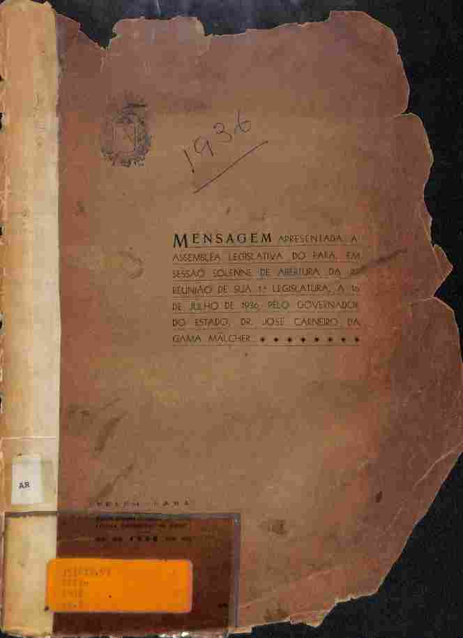 Mensagem apresentada a Assembléa Legislativa do Pará, em sessão solenne de abertura da 2ª reunião de sua 1ª legislatura, a 16 de julho de 1936 pelo governador do Estado, Dr. José Carneiro da Gama Malcher